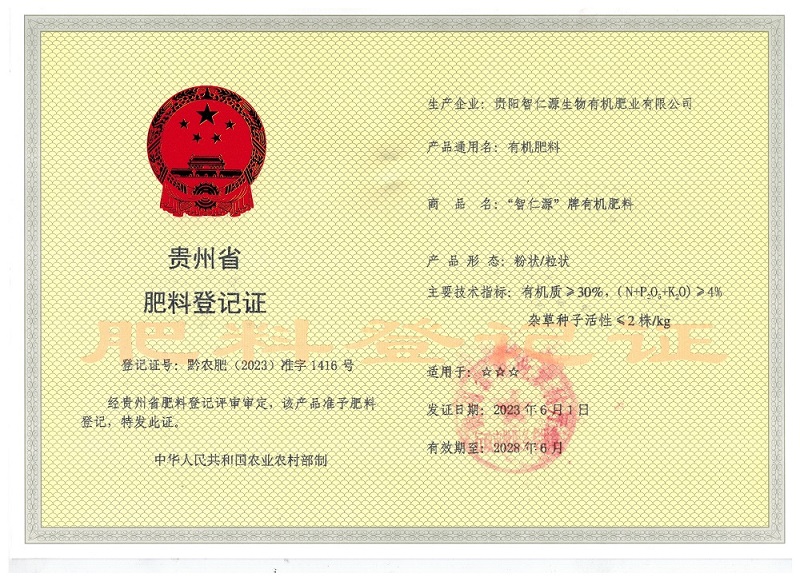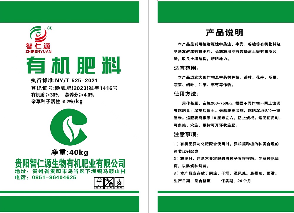贵阳智仁源生物有机肥业有限公司成立于2015年1月,企业注册资金375万元,公司采用纯植物的中药渣为原料,是一家集有机肥、基质肥等肥料的生产、销售、农技服务为一体的高新技术企业。 公司与贵州省农业科学院土壤肥料研究所联合成立研发实验,攻克了用中药渣原料以生物技术生产有机肥的多个技术难关;形成自有生产工艺,研发出以中药渣废弃物为原料的优质有机肥料符合国家NY/T525-2021标准,并获得正式肥料登记证(黔农肥(2023)准字1416号),成为贵阳市为数不多的利用制药企业生产的废弃物中药渣加工处理成有肥料的生产企业之一,于2023年被省科技厅评为国家高新技术企业。 生产厂区位于乌当区下坝镇、生产发酵车间约8000平米(含发酵车间和生产车间),年处理能力约3万余吨中药渣,具有年产量1.2万吨的有机肥生产线,自成立以来,公司与贵阳多家药业企业签订委托处理协议,为贵阳市大健康医药产业的有机废弃物处理找到一条科学、环保、低碳和可持续发展之路,现与贵州省农业科学院土壤肥料研究所合作,在产品推广中,广泛导入栽培技术指导和测土配方施肥,有效提高了种植用肥的有机化程度。 公司秉承“健康源于自然”的信念,坚守“润物有道·土沃生金”的价值取向,以“卓越品质、深度服务”为行动准则,致力于推进生态有机农业的健康发展。基于卓越的品质特征,近年来公司通过大量的实验种植、推广种植,赢得广大客户信赖与赞誉;目前已销往贵阳周边、清镇、修文、息烽、遵义、盘州、平塘、凯里等多个地州市,运用到辣椒、花椒、猕猴桃、西梅、草莓、李子、梨子、葡萄、枇杷、布朗李、白菜、香葱、黄瓜、西红柿等约30余种农作物,不仅可满足不同区域、不同品种的种植需要,更是在土壤改良方面表现不俗。取得了良好的社会效益和经济效益 我公司一直秉承于服务至上的原则,除销售有机肥以外,同时也为客户提供有效的售后服务管理,近几年,公司逐渐组建一支专业的售后管理团队和服务系统,从销售开始追踪到每一个种植户,为其提供测土配方、施肥指导、病虫害预防、栽培技术等系列售后咨询服务。